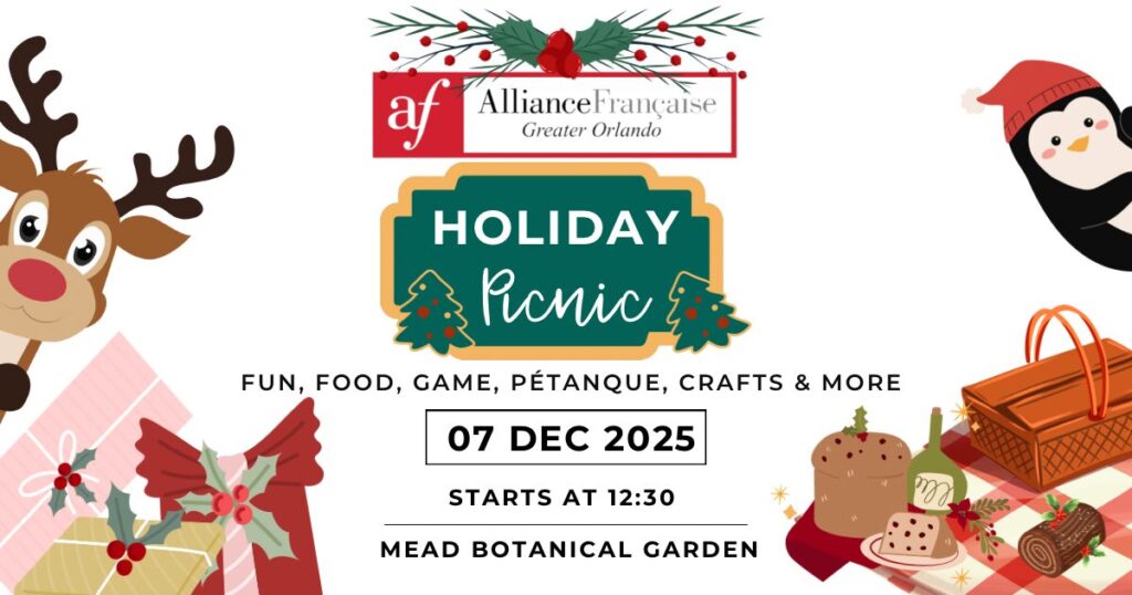 Bonjour and Welcome to Our November Newsletter! As the crisp days of fall settle in, we’re excited to share all the wonderful events, activities, and highlights from the Alliance Française of Greater Orlando. From delicious cultural explorations in our Friday French Chat series to lively picnics, DELF exams, and student exchanges, November is full of